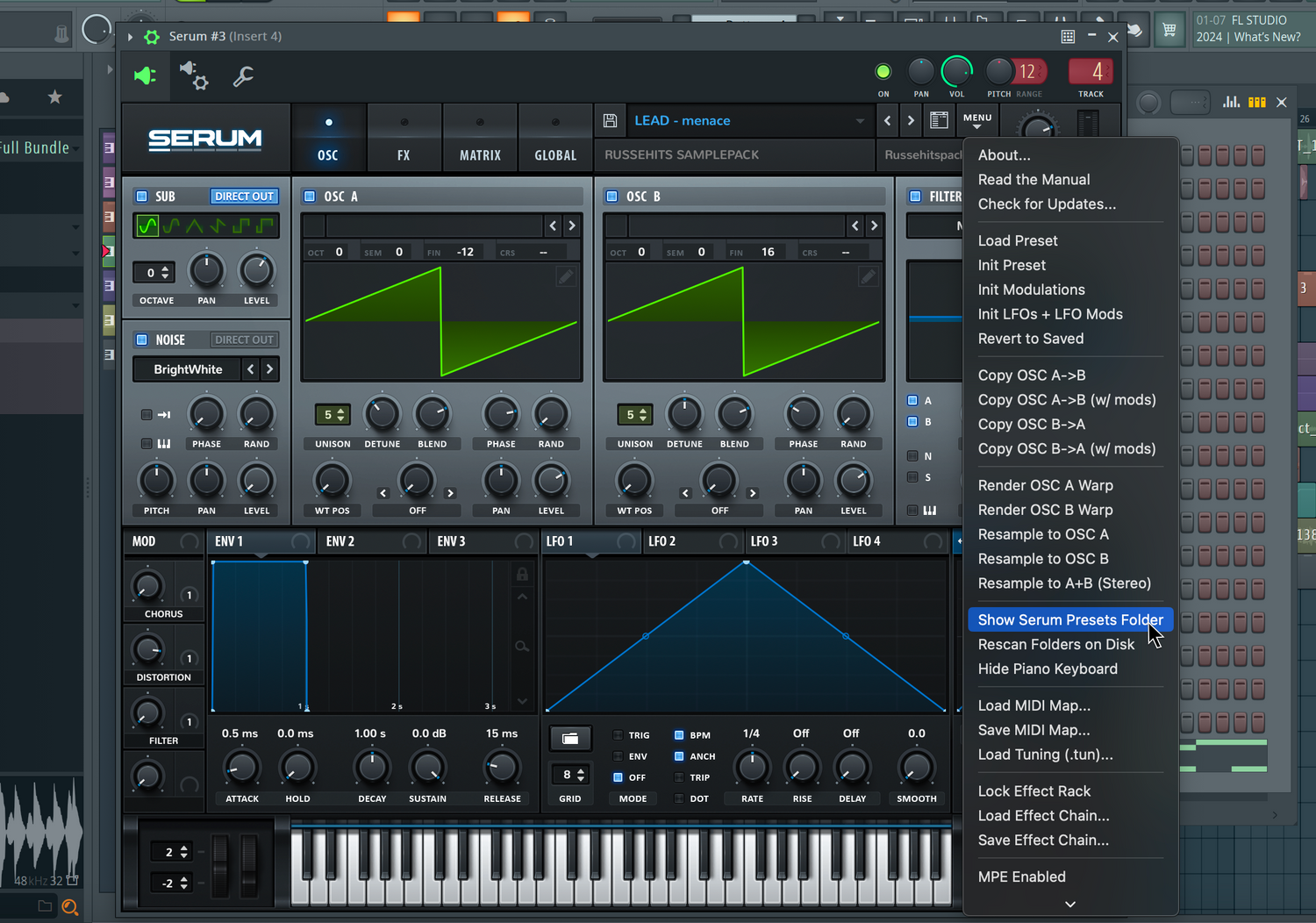 Gå til Menu i Serum og trykk på "Show serum Presets Folder"
