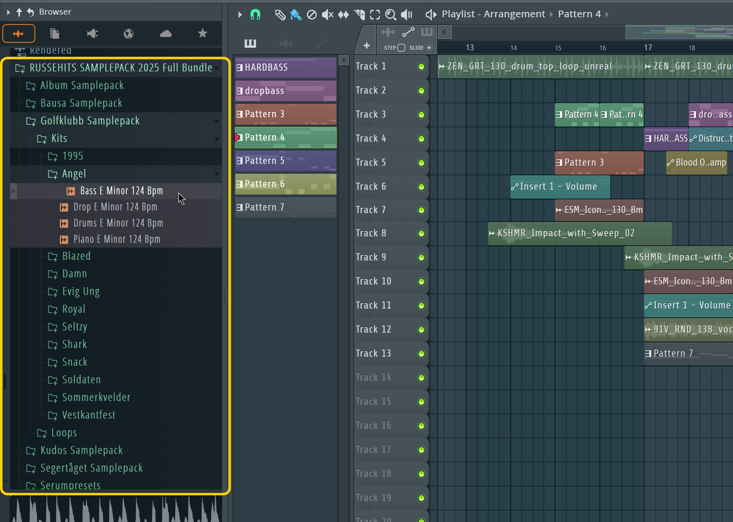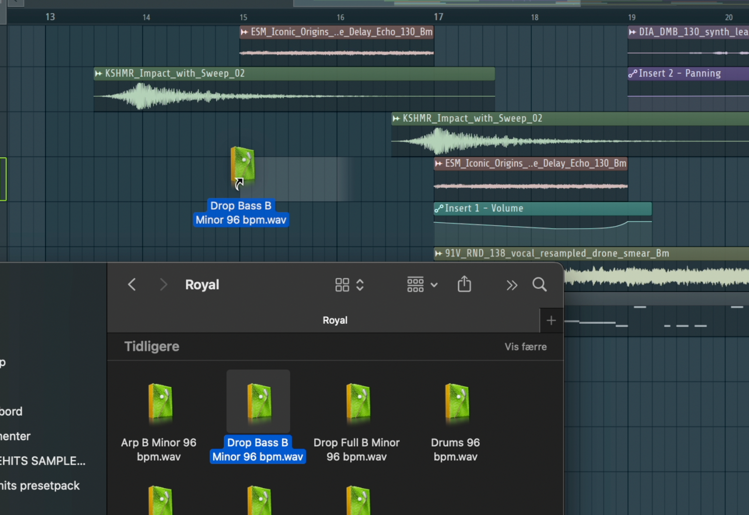 Nå skal samplepacken ligge i panelet til venstre. Herfra kan du dra samples rett i prosjektet.