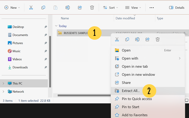 Windows: Høyreklikk på zip-filen og klikk "extract all" eller "pakk ut alle"